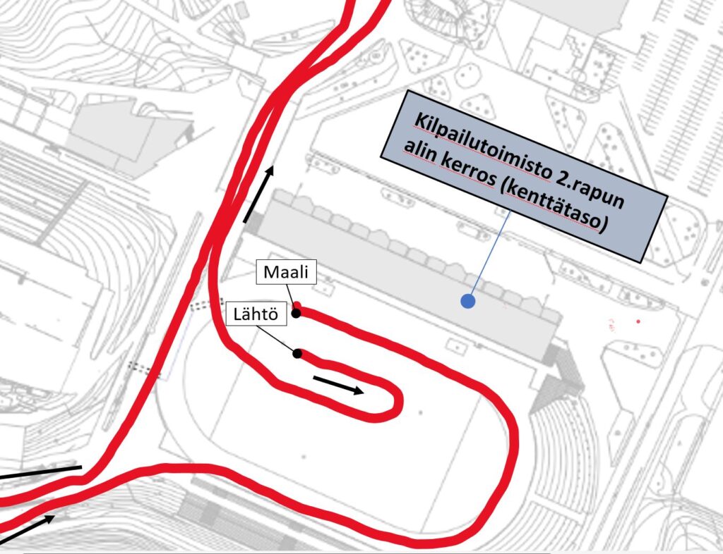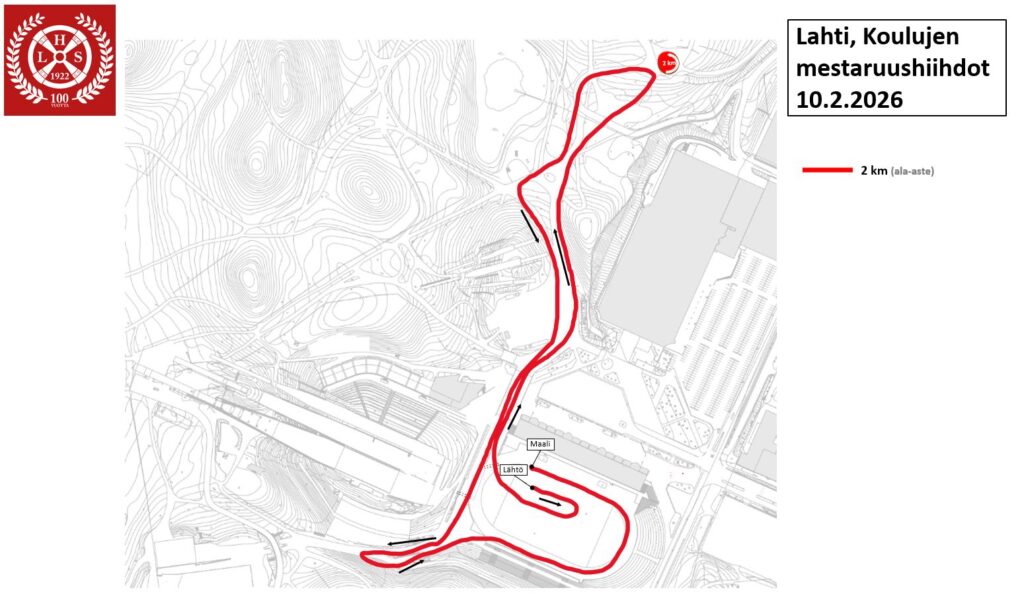 Kilpailun reitti 10.2.2026. Reittinä 2km latu kaikille luokka-asteille.