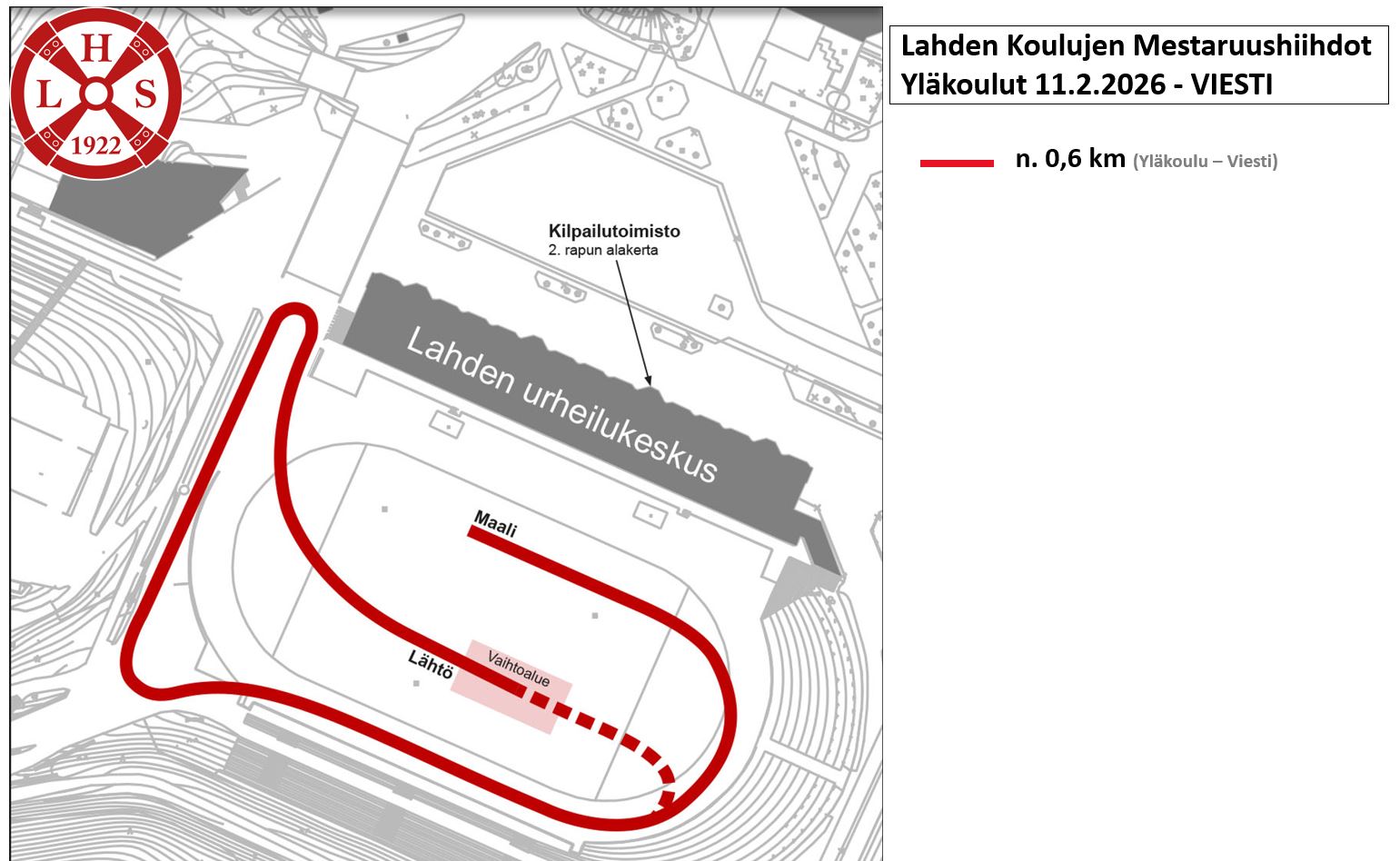 Kilpailussa käytössä 0,6km viestihiihto reitti